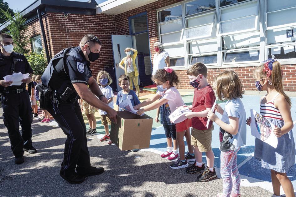 The day before 9/11/21, between 7:30 a.m. and 10:45 a.m., Patrick and local first responders went to seven schools for a 15-minute “High 5,” as he called it. Students and first responders just waved rather than touch hands as they did in previous years.